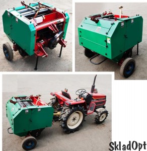 Пресс-подборщик навесной рулонный к минитрактору. Пресс подборщик модели 9YK-8050 запрессовывает сено в небольшой рулон, а также связывает его нитью.