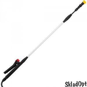 длина распылительной удочки — 60 сантиметров. Плюс в комплекте получаете дополнительную раздвижную трубку, длина от 60 до 100 см. Вы сможете дотянуться даже до верхних листьев деревьев и середины густых плодовых кустов.