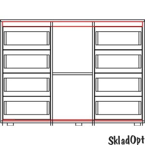 Комод с 8-мю выдвижными ящиками. Роликовые направляющие. Раздвижные двери (ДСП, зеркало, сатин - на выбор), профиль 1 серебро. Материал основной: ДСП ламинированная кромкованная 16 мм, 8 цветов ДСП на выбор. Ножки-чашки пластиковые, регулируемые. Ручки врезные. | |||