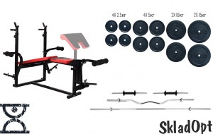 Скамья для жима Hop-Sport 1070 универсальная + Штанга 87 кг + W-обр. гриф + грифы на гантели.