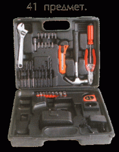 Основной вариант Вариант 1 (кейс - 41 предмет) Вариант 2 (кейс - 74 предмета) Вариант 3 (кейс - 81 предмет) 1. Дрель ДЭА-18 Т 1 1 1 1 2. Батарея аккумуляторная (1 установлена на дрели) 2 2 2 2 3. Патрон (установлен на дрели) 1 1 1 1 4. Устройство зарядное батарей с блоком питания 1 1 1 1 5. Отвертка – насадка (установлена на дрели) 1 1 1 1 6. Набор сверл 6 сверл 5 сверл 9 сверл 10 сверл 7. Набор сверл по дереву - 5 сверл 10 сверл 10 сверл 8. Набор перовых сверл по дереву - - 3 сверла 2 сверла 9. Набор сверл по бетону - - 10 сверл - 10. Набор сменных отверток-насадок 6 насадок 11 насадок 34 насадки 33 насадки 11. Переходник для установки отверток-насадок 1 1 1 1 12. Рукоятка с магнитной головкой для отверток-насадок - 1 1 1 13. Рукоятка для торцевых головок - - - 1 14. Набор торцевых головок - 9 головок - 18 головок 15. Разводной ключ - 1 - - 16. Молоток - 1 - - 17. Плоскогубцы - 1 - - 18. Рулетка - 1 - - 19. Нож - 1 - - 20. Фонарик - - 1 1 21. Кейс 1 1 1 1 22. Руководство по эксплуатации 1 1 1 1