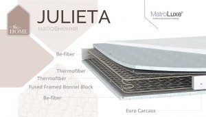 Ортопедический матрас Джульета - бюджетная модель из серии матрасов the Home на основе надежного и прекрасно зарекомендовавшего себя пружинного блока Боннель. Основным преимуществом этой модели является усиленный периметр изделия двумя стальными рамками, а также разработанная технологами инновационная угловая система поддержки "Butterfly", которая позволяет матрасу выдерживать повышенные нагрузки, а также продлевает срок его эксплуатации.