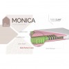 Жесткость у матраса Моника асимметричная, то есть разная с обоих сторон. С одной стороны жесткость составляет 3 балла, а с другой 5 по пятибальной системе. Латексная пена Latex Foam, из которой состоит основной слой матраса, обладает эффектом упругости и микромассажным эффектом. С одной из сторон матраса расположен слой кокоса, для придания ей дополнительной жесткости. Кокосовая койра - это натуральный материал, который прекрасно пропускает воздух и не располагает к появлению клещей.