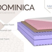 Ортопедический матрас Доминика, » выполнен исключительно из натуральных слоев наполнения, без применения пружин. Матрас беспружинный, двусторонний обладает разной степенью жесткости сторон. С одной стороны в Доминике будет средняя жесткость, а с другой стороны более жесткая спальная поверхность. Это будет выгодно тем покупателям, кто еще не определился со степенью своего личного комфорта во время сна, и хочет провести эксперимент, поочередно поспав на обоих сторонах.