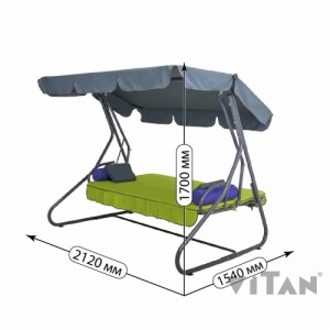 Главная задача и функция садовых качелей это создание уютного уголка для отдыха на природе. Садовые качели от ТМ Витан под названием «Графиня» идеально подойдут для Вас. Каркас данной модели выполнен из стальных труб нескольких диаметров, основным из которых есть труба диаметром 38мм. Основа сиденья пружинный блок, оригинальность состоит в том, что выполнен этот блок методом плетения металлической проволоки, что обеспечивает надежность и удобство при сидении. Весь стальной каркас покрыт полимерным покрытием, для стойкости от коррозии, а также для стильности внешнего вида. Данная конструкция - качели «Графиня» полностью разбирается на отдельные детали, что очень удобно для хранения и транспортировки. Для сборки есть детальная инструкция, где схематически объясняется, как собрать, или разобрать качели. Тент крыши из специальной влагостойкой материи, сиденье изготовлено из пружинного блока и стальной проволоки. На сиденье мягкий матрас из ткани с поролоном внутри. На качели могут разместиться 3-4-ро взрослых человек, а если с маленькими детками то и все 5-6-ро! Максимально-допустимая нагрузка до 280кг. Широкое сиденье размером 1710х535мм позволит удобно расположиться на качели и насладиться отдыхом. Мы убеждены, что продукция от ТМ Витан вызывает только положительные эмоции. Качество и надежность от украинского производителя Вам гарантированны.