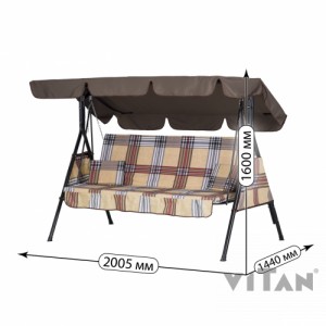 Внешний вид модели подойдёт к любому загородному экстерьеру - специалисты ТМ Витан подобрали оптимальные цветовые решения. В весенне-летний период качели будут гармонично смотреться на приусадебном участке или станут прекрасным дополнением Вашего отдыха в саду. Чехлы сидений и боковины изготовлены из ткани. На сиденье мягкий матрас из ткани, с поролоном внутри.