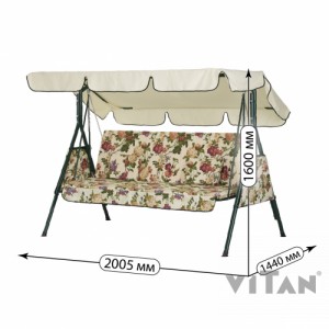 Внешний вид модели подойдёт к любому загородному экстерьеру - специалисты ТМ Витан подобрали оптимальные цветовые решения. В весенне-летний период качели будут гармонично смотреться на приусадебном участке или станут прекрасным дополнением Вашего отдыха в саду. Чехлы сидений и боковины изготовлены из ткани. На сиденье мягкий матрас из ткани, с поролоном внутри.