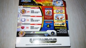 Beyblade Z Ahilles- это настольная игра по мотивам анимационного сериала. BEYBLADE - это небольшой сборный вращающийся "волчок", который запускается с помощью специального пускового механизма и предназначен для сражений с другими Beyblade. Битвы обычно проходят на специальном поле напоминающим большую глубокую тарелку, под названием Арена Beyblade. Двое или более играющих запускают на него свои бейблейды (волчки). Побеждает в битве тот, кто сможет своим волчком выбить бейблейд соперника из Beystadium, или остановить бейблейд соперника. Возможным так же является проведение битвы и без Beystadium, до тех пор пока один волчок не остановится. Сами бейблейды состоят из ряда заменяемых частей. Которые влияют на то как они ведут себя в бою. Изменяя части можно улучшить бейблейд. Что развивают игрушки BeyBlade: --в игровой форме ребенок узнает азы физики; --игра поможет узнать, что такое партнерство; --благодаря настоящему батлу, ребенок научиться следовать правилам; -- также с детства мальчишка будет узнавать понятия «тактика» и «стратегия».