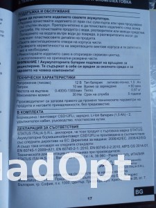 Полностью размещенный в рукоятке литий-ионный аккумулятор.