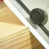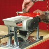 Рубанок надежно фиксируется в нем подошвой вверх, при этом ножи оказываются прикрыты подпружиненным защитным кожухом, обеспечивающим безопасность. Фиксацию курка в нажатом положении производят специальной скобой, опять же входящей в комплект. Короткие (до метра) и нетяжелые заготовки гораздо удобнее обрабатывать именно в таком положении инструмента.