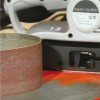Простая система замены ленты не требует вспомогательного инструмента или каких-либо навыков. Рычагом ослабляют натяг ленты, меняют «расходку» (важно учесть направление движения поставить ленту нужной стороной помогут стрелки на обратной стороне «шкурки»), возвращают рычаг в исходное положение и, включив машину, центруют абразив, чтобы он не съезжал с роликов. За центровку отвечает рукоятка, вращением которой меняют угол наклона переднего ролика в горизонтальной плоскости.