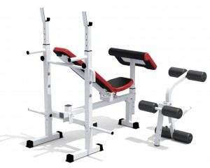 В набор тренажера входит несколько силовых станций, ножной блок, скамья для жима лежа (с регулируемым углом наклона), скамья Скотта, регулируемая по высоте.