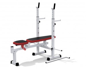 Стойки под штангу тренажера регулируются по высоте.