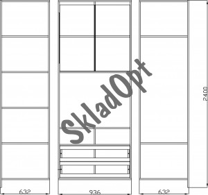 ШКАФ-КУПЕ для гостинной №2 с фасадами из ДСП или зеркала + 2 двери распашные ДСП