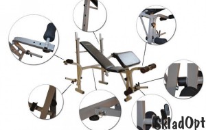 Универсальная скамья для жима позволяет выполнять упражнения жим штанги на горизонтальной и наклонной скамье, сгибание и разгибание ног с отягощением, сгибание рук на скамье Скотта (для бицепса), разводка рук на тренажере «Баттерфляй». Скамья предназначена для домашнего использования и предусматривает возможность быстрого складывания.