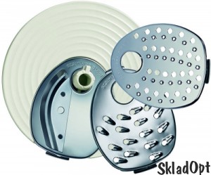 - Металлический шинковочный диск для шинковки среднего размера, нарезки средними ломтиками и измельчения.