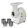 Основной особенностью данной модели является наличие в комплектации специальных насадок, благодаря которым, мясорубка позволит приготовить не только мясной или рыбный фарш, но и колбасы, нашинковать или натереть несколькими способами овощи, а также, с помощью насадки-соковыжималки, приготовить свежий сок из томатов, ягод, мягких овощей и фруктов.