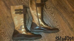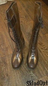 На шнурках спереди и на змейке сбоку, кожа внутри и снаружи. Длина по ноге 32,5 см, длина по стельке 25-25,5 см