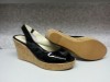 Босоножки лакоированые подошва 26 см, каблук 8,5. Платформма в виде корковой пробки. выглядит красиво. Очень удобные.