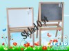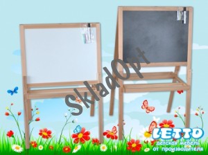С возможностью регулировки по высоте. Черная сторона - ламинированная ДВП - для рисования мелками. Белая сторона - крашеный оцинкованный лист. На ней можно размещать магнитную азбуку, развешивать картинки на магнитах и писать маркерами на водной основе. В рабочем состоянии два больших и удобных контейнера по обеим сторонам доски надежно сохранят все богатства маленького художника: мелки, маркеры и магниты. Доска для рисования легко и быстро складывается одним движением, ее удобно хранить, т.к. она почти не занимает места. Она станет центром притяжения для малышей и предоставит им простор для творчества. Каркас доски выполнен из твердой древесины (бук). Покрытие - прозрачный нетоксичный лак на водной основе. Высокое качество обработки древесины. Все кромки скруглены для безопасности малыша.
